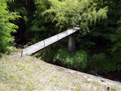 手すりのない橋。 ふふんSめ、絶対に通れまい!! と思ったら、 大丈夫! と、渡ってしまった。 恐るべし虫パワーだ。 |
