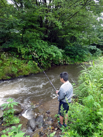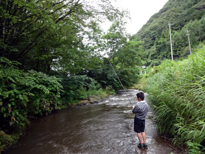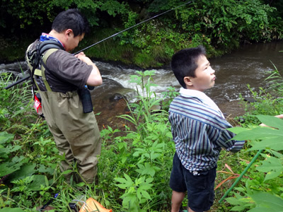 その後はピタリとアタリは止んだ。 しかしSは釣りを止めようとはしなかった。 味をしめたSであった。 後から聞いたのだが、今日は放流はなかったそうだ。 それに放流するのはイワナで、釣れたのはヤマメ。 ってことは、S・・・。 もしかして大手柄・・・! |