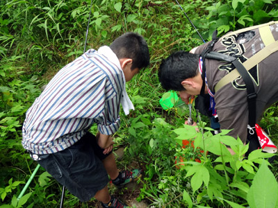 昨晩下の家にクマが出たと聞いて、 ビビリまくっていたS。 しかしポイントに近付くと足早になる。 |