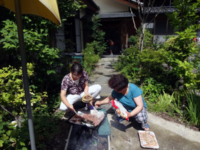 お昼ご飯を頂いて、おママはおばさんと供え物の天ぷらを揚げる。