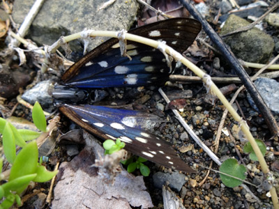 初めて見た、オオムラサキ。 亡骸だが、思わず激写。 |