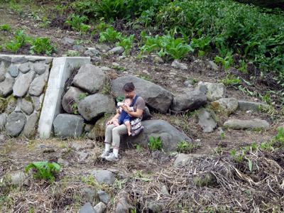 Sと釣りに出ようと、餌のミミズを探す。 歩いているウチに、再びお墓に来ていた。 |