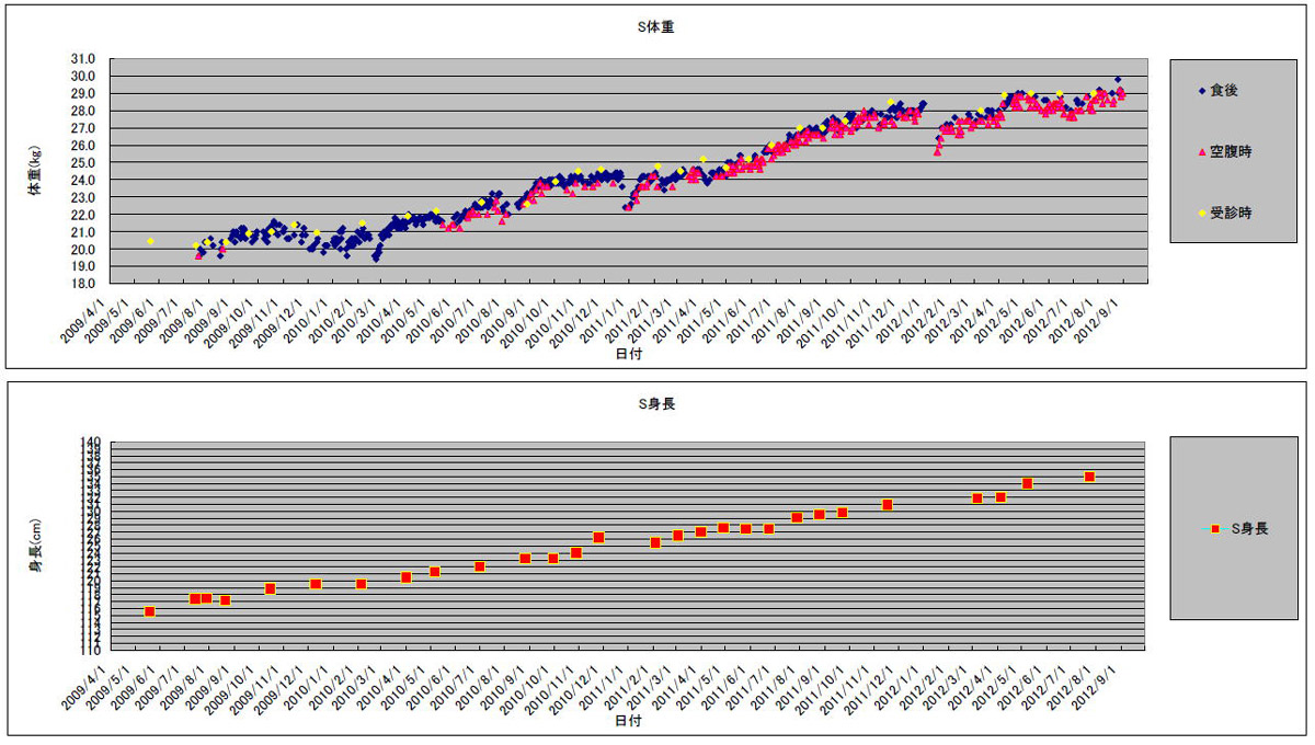 身長と体重が成長曲線の下部に張り付いてしまった。
