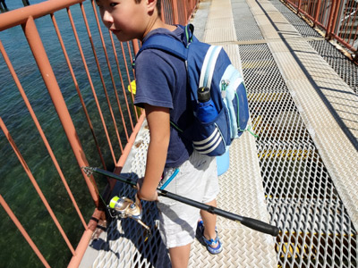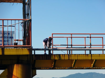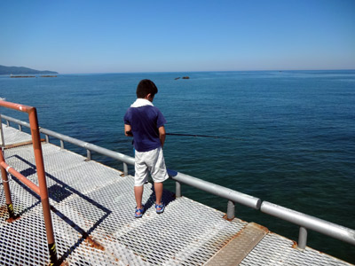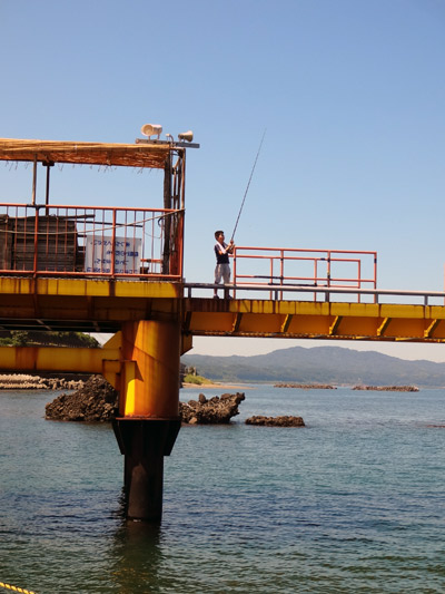 釣り用に作られた橋、 まず、海にせり出す先端に向かう。 |