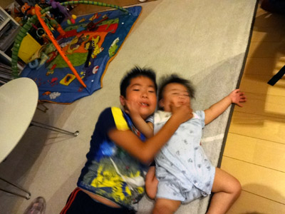 風呂前も、寸暇を惜しんで戯れる。 |