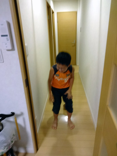 ネショ対策のため、今晩からおむつをやめ、パンツに。