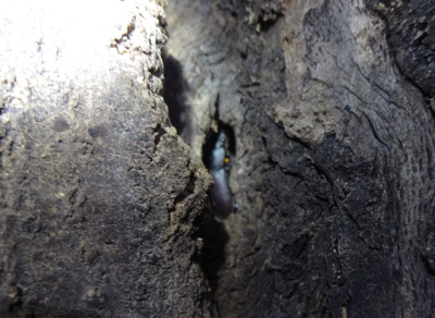 ホントにあった、樹液が出てい木が2本。 ほぉ、おるわおるわ、ホントにおるわ。 |
