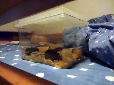 Sがベッドの上に登ったり動かしたりで、 皆隠れてしまった。 |