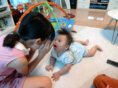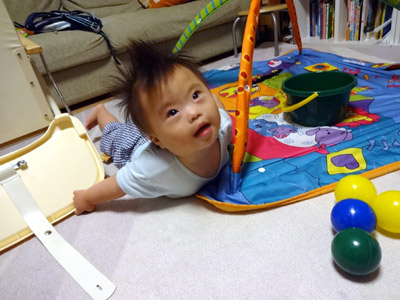 成長発達が遅いダウン症だから、まだまだ赤ん坊様であるが。