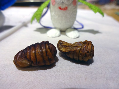 シルク博物館に行って来た。 着物一着に、これだけの繭が要るそうだ。 |