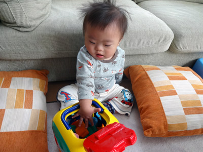 他の子は与えられた課題、目の前のオモチャを掴んだり持ったりするが、