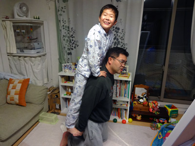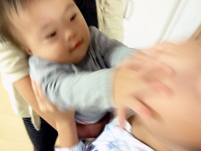 できた! と思った立ちおんぶだが・・・。 |