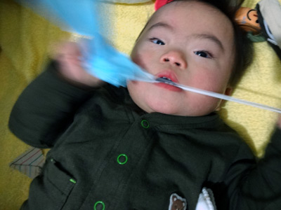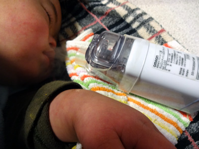 おママが駆けつけると、あっ、嘔吐している・・・。