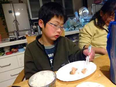 今日は左手で箸。