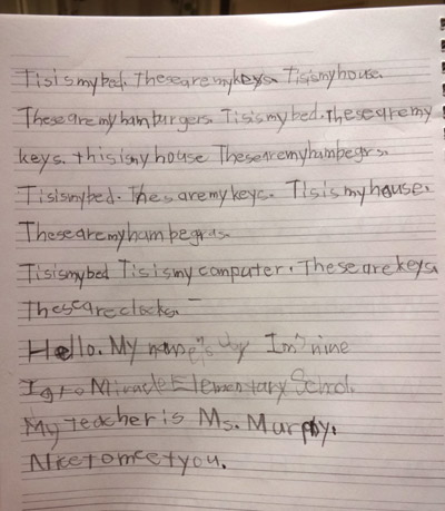 下4行が左手の字。 サウスポーの素質満点。 というか、大差ない・・・? |