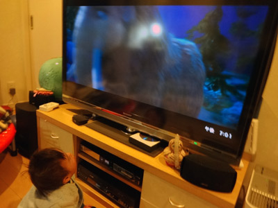 HがTVに食らいつくようになった。 う〜ん、イカンなぁ・・・。 |