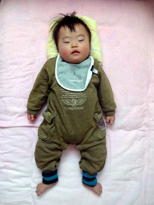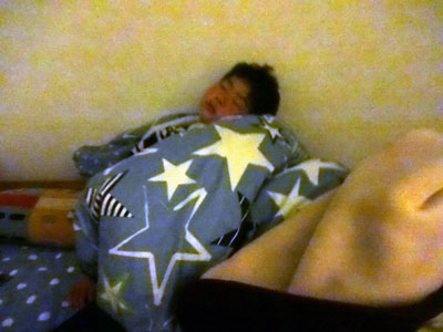 幸か不幸か昨晩は寝苦しく1時間おきに泣いていたそうなので、