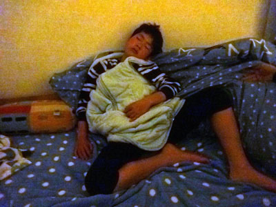 昨晩も1時間おきに泣いたそうなので、寝不足なのだろう。