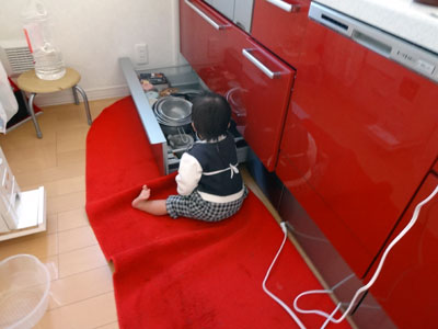 その間、暴れん坊はキッチンに進出。 危ない危ない。 |