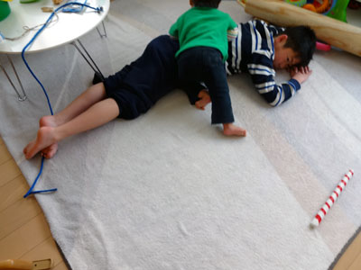 帰宅後すぐに昼寝をさせる、というか立ち上がれない。