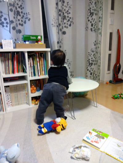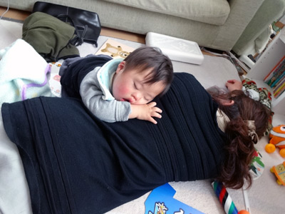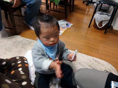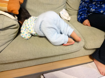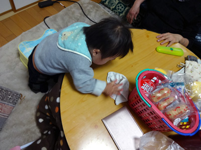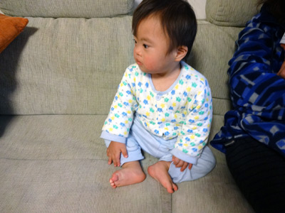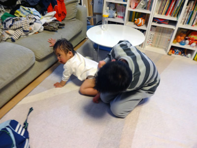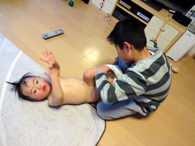 風呂上がりのお手伝い。 軟体Hの服着せはとても大変。 |