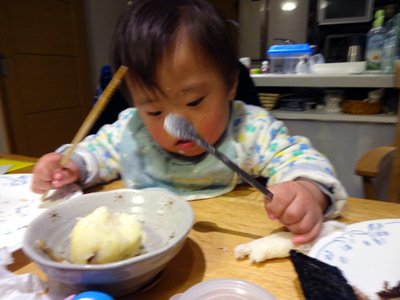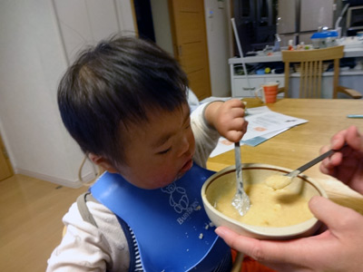 いつもSは嫌いなものから食べるようにしてるので、なかなか箸が進まない。