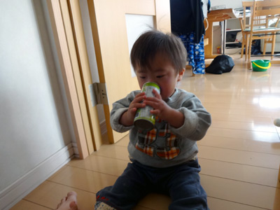 いや飲みたそうに手を伸ばすのだが、喉が痛いのか1口で放り投げてしまう。