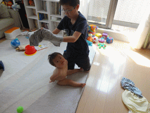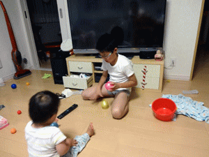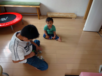 Sが遊んでいると、かならず割り込んでくるH。 |