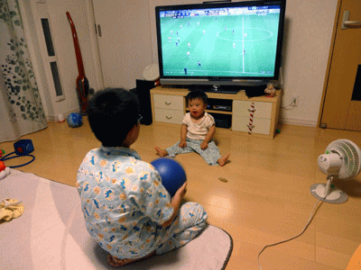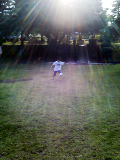 夕方、家の前でサッカー。 これもまだ大好きだ。 |