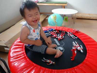 トランポリンもお気に入りの場所。 ソファーなども登るとそこから動かない。 |