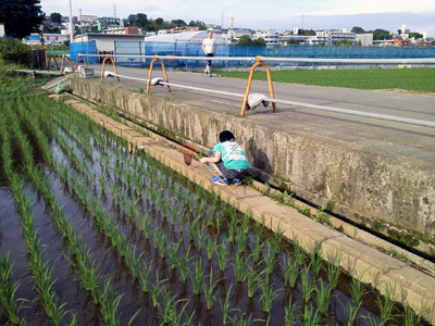 Sは1人でホウネンエビを捕まえ、喜んでいた。