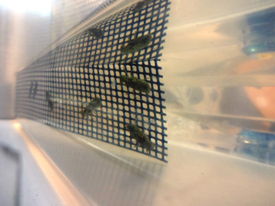 昨日立てた網で羽化。 あと何匹部屋に飛ぶのか・・・。 |