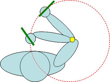 肘が支点になると、鉛筆を持つ手の動きが円のように。 近づくにつれ、手首が無理に曲がってしまい、猫背にもなる。 |