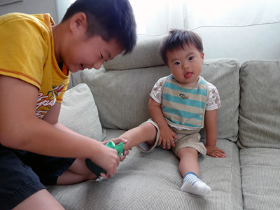 いつもの小児科内科クリニックの先生直伝の処置を施す。