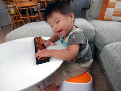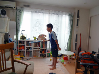 見て見てと、床に置いたボールをラケットで叩き、掬い上げる。