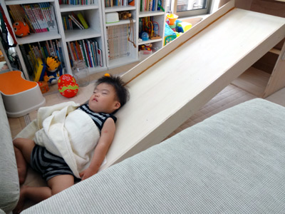 ずいぶんと興奮しているし、昼寝も遅かったそうなのでどうなるかと思ったが、