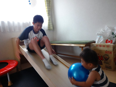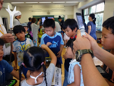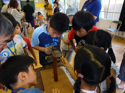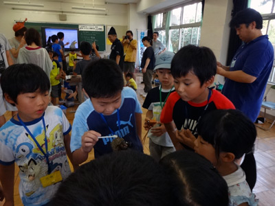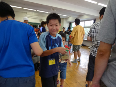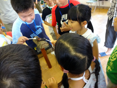 ![]() | 午後はビオトープのカブトムシ相撲大会。 |