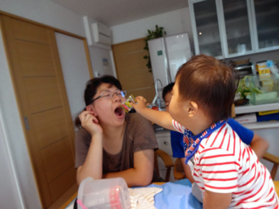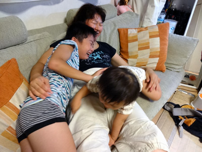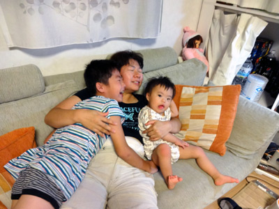 おママとHのところに、Sがダイブ。 |