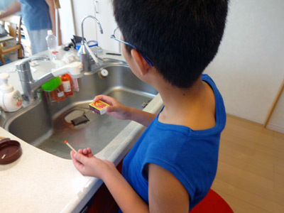 案の定、マッチの擦り方を忘れているS。