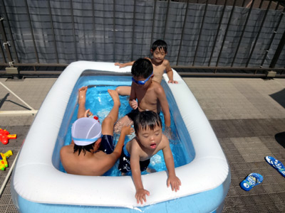 お友達が遊びに来た。 プールがあってよかった・・・。 |