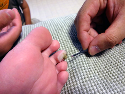 イボ治療。 台付きお灸では熱が十分ではないので、 ほぐして直灸に。 |