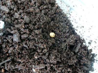カブが卵を産んだ!とS。 しかし表面に産むとは、ちょっと水分が多すぎたか・・・。 |