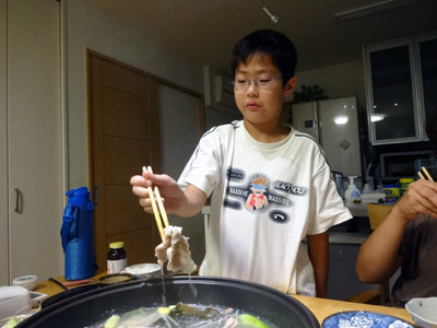 夜は大好物の、ブタしゃぶ。 なんだか背、伸びたよな・・・。 |