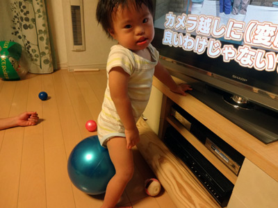 知能は10ヵ月程度(だったかな?)、動きは1才3ヶ月程度だね。