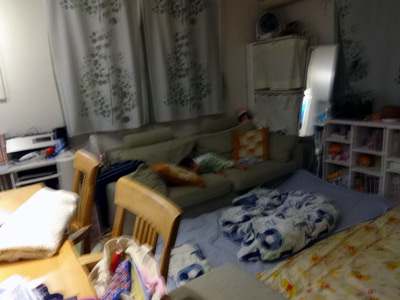 私が出張で居ないし、3人リビングで寝ることにしたそうな。