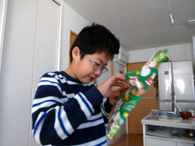 S「Hまだ字が書けないから、おママが代わりに書いてあげて!」