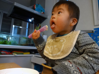 糖分と脂肪分、僅かに与えたケーキを一生懸命食べていた。
