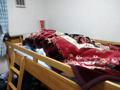 どうやらベッドに貼っておかないといけないものと思い込んでいるらしい。