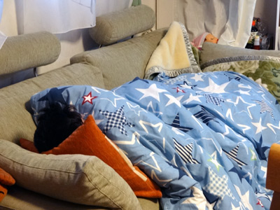 買い物中もお留守番で、珍しく本当に寝ていたようだ。