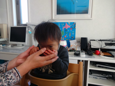Hが泣き出したと思ったら、ゲロゲロ嘔吐し始めた。